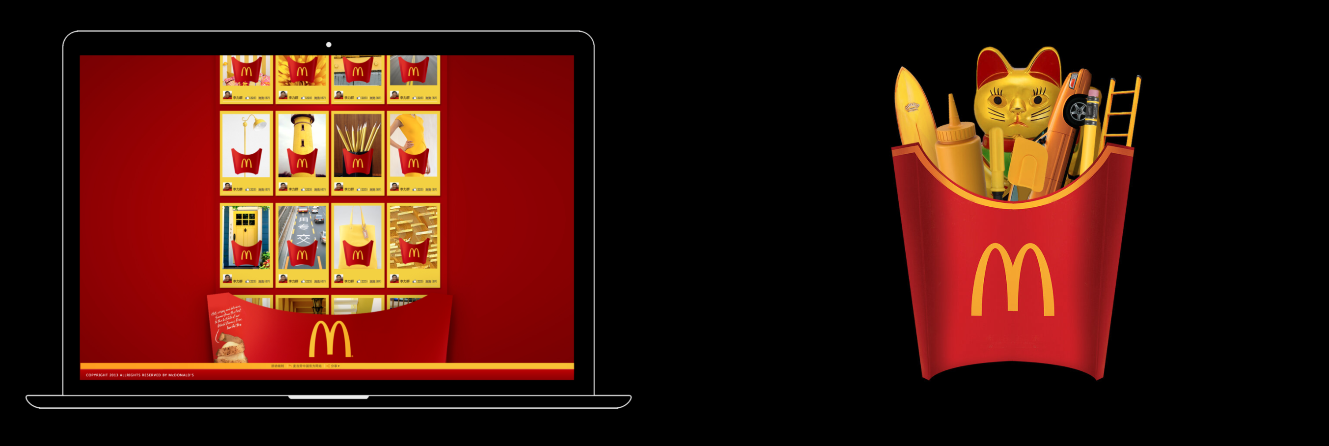 We created a bespoke Fry Finder app that used image recognition, well before its time, to detect objects that were yellow and fry-like in shape. Partnering with Weibo and WeChat would then upload their images to our dedicated microsite. Once a user filled their empty McDonald’s Fries box they would instantly be rewarded with free fries to satisfy their craving.